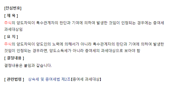 또한 주식을 양도한 경우 양도차익이 부모의 판단과 기여에 의하여 발생한 것으로 본 경우에도 증여세 과세대상으로 본다.