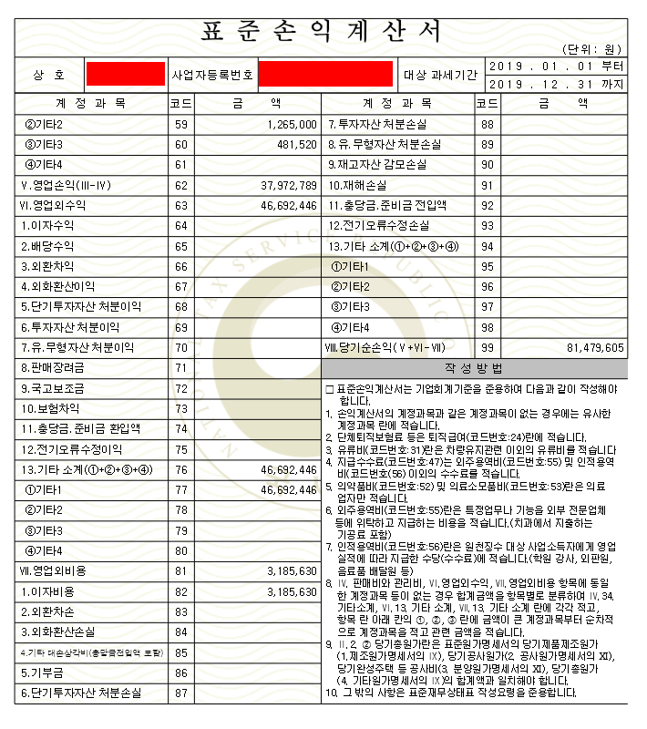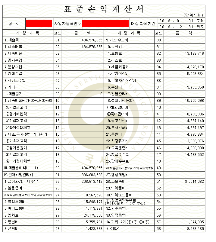 홈택스> 민원증명> 표준 재무제표 증명 접수> 손익계산서