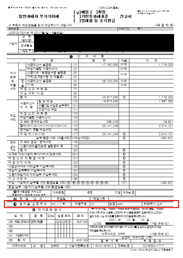 부가가치세 신고서 관련해서 외국법인과 비거주자 용역 및 재화 거래 시 영세율 상호주의 란을 여로 체크하여 정확한 신고서를 작성하시길 바랍니다.
