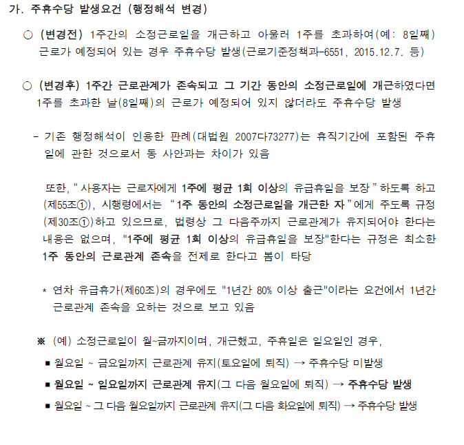 즉, 소정근로일에 따라 주휴수당이 유무가 확실해졌다.