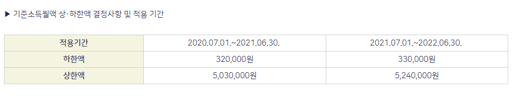 하지만, 국민연금 기준 소득월액에는 상한액과 하한액이 있다. 일반적인 경우에는 상한액을 초과하는 경우에 소득을 조정하여 보험료를 부과한다.
