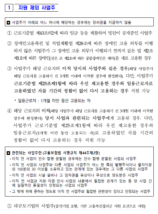 지원제외 사업주 정리