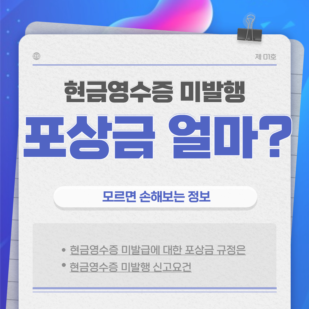 현금영수증을 미발급을통한 포상금은 5만 원 이하의 경우 1만 원 그이 상의 금액은 20% 금액이며 최대 50만 원 까지 포상금이 지급된다. 연간 200만 원을 한도로 포상금을 지급받을 수 있다. 같은 거래를 나누어서 신고하는 경우에는 합산하여 거래 1건당 포상금 한도액을 계산하며, 동일인에게 연간 지급할 수 있는 포상금 한도액은 신고일자를 기준으로 신고연도별로 계산한다.