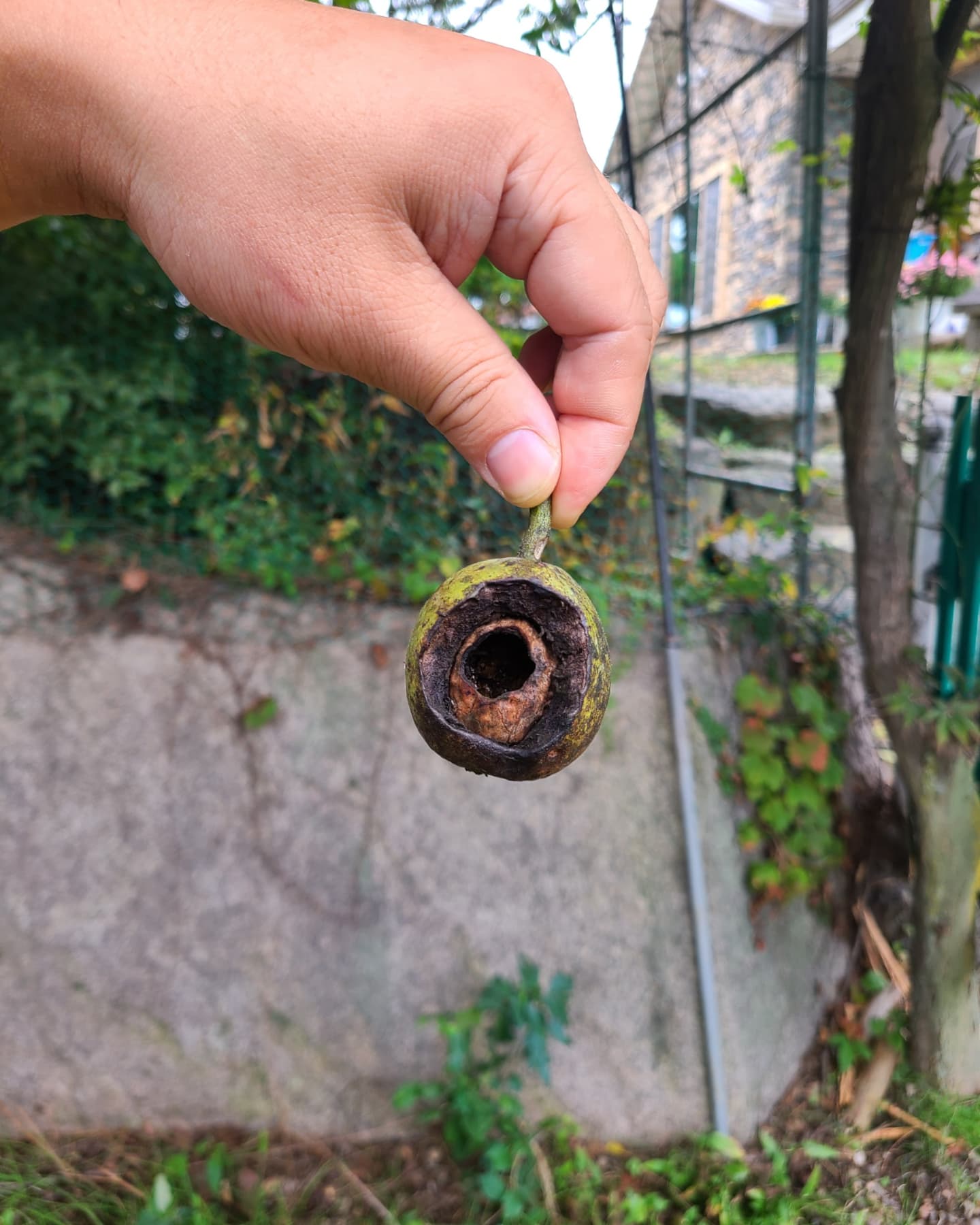라고 몇 번 오고 갔는데 추석이 지나고 나니 익어서 벌어진 채 매달려있더라. 오늘은 호두 따는 날~