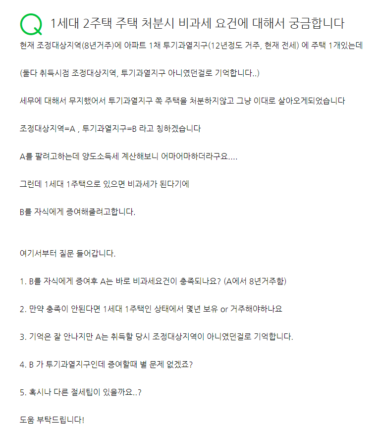 1. 2주택자의 경우 1 주택이 된 날로부터 2년을 더 보유해야 비과세를 받을 수 있습니다.